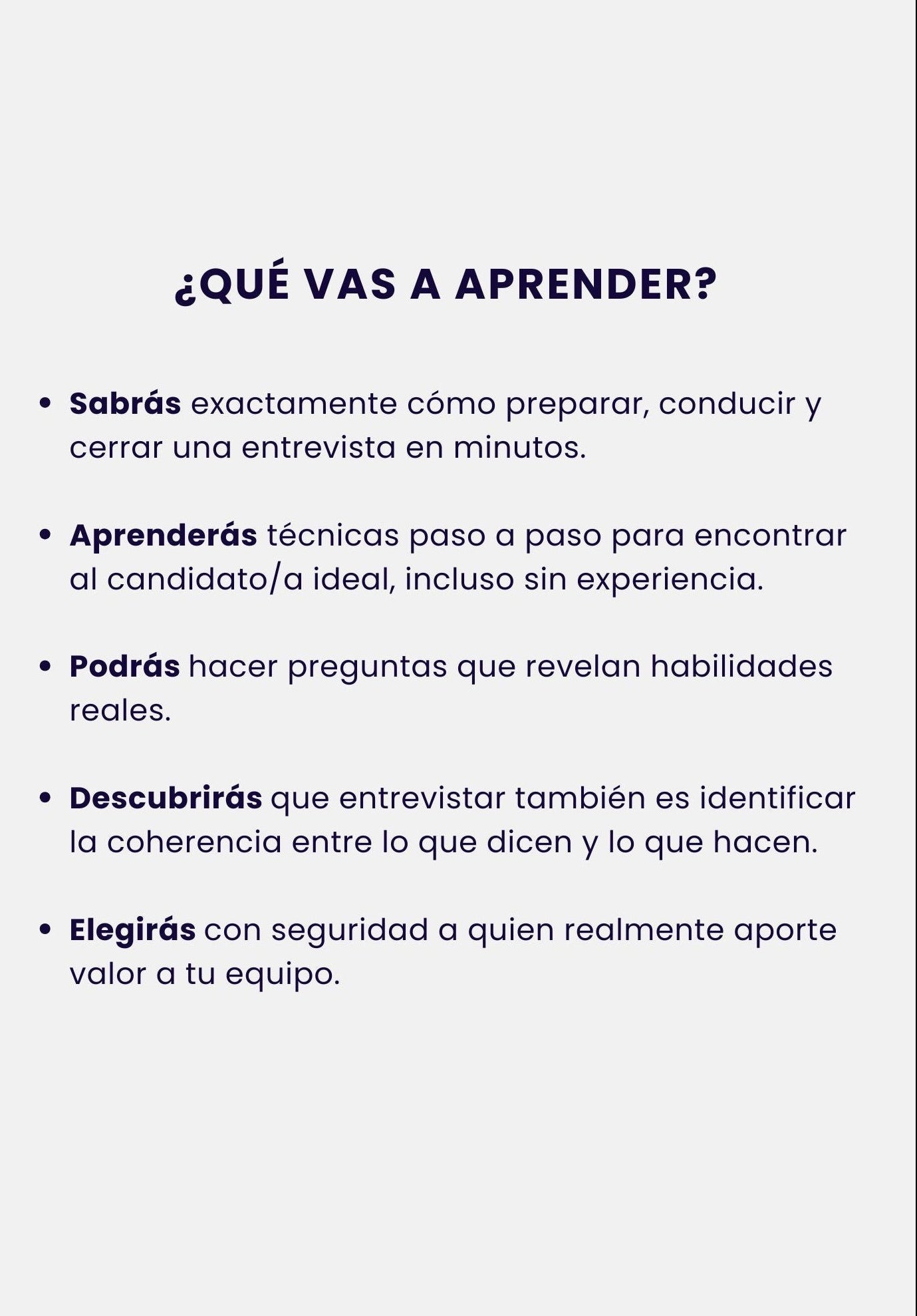 ✅Sí. Vas a encontrar preguntas listas para usar, ejemplos de situaciones reales y conceptos simples para entrevistar a cada persona con claridad y sin dudas.