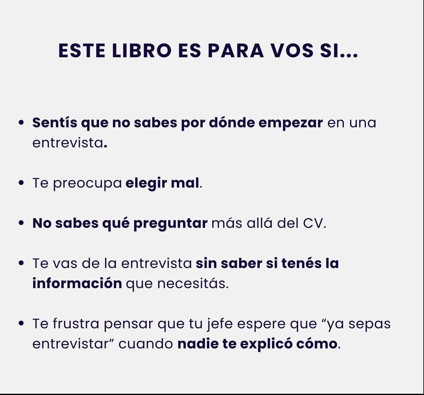 ⏰Desde tu primera entrevista podés incorporar las bases para preparar, conducir y cerrar entrevistas con confianza y seguridad. Cada capítulo trae ejercicios simples y aplicables al instante.